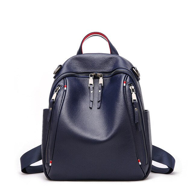 2022 High Quality Lady Genuine Leather Backpacks Women England Style Fashion Simple Soft Bag Girl Bi-directional Zipper Packsack