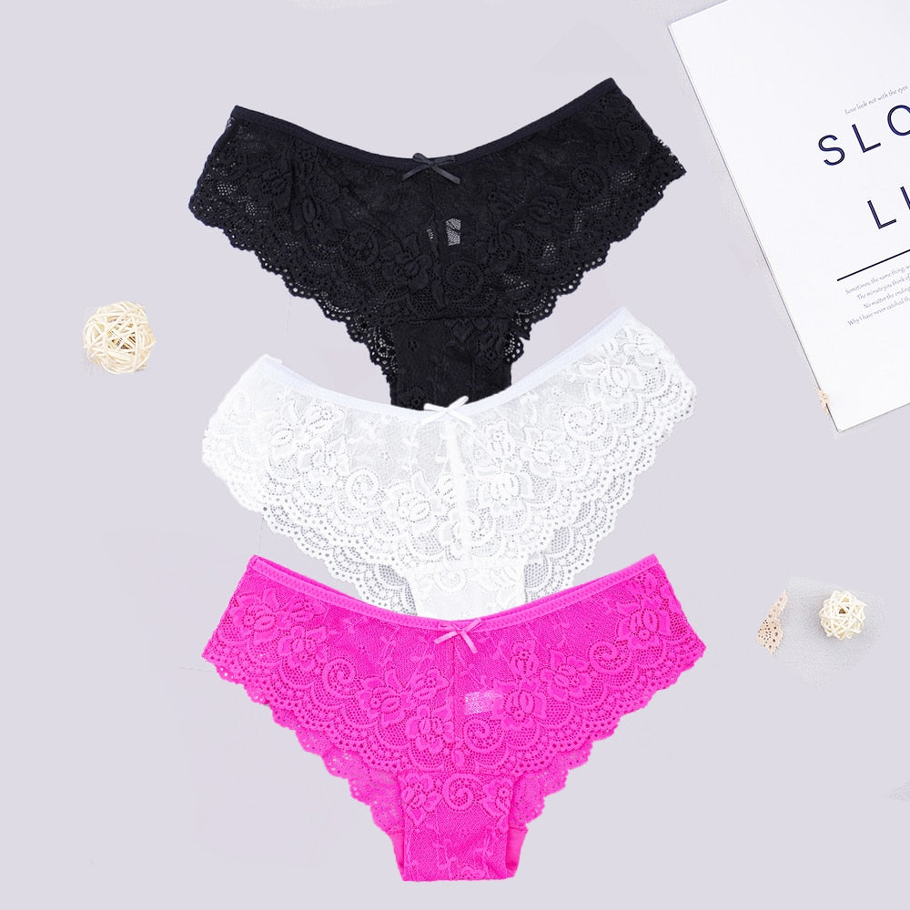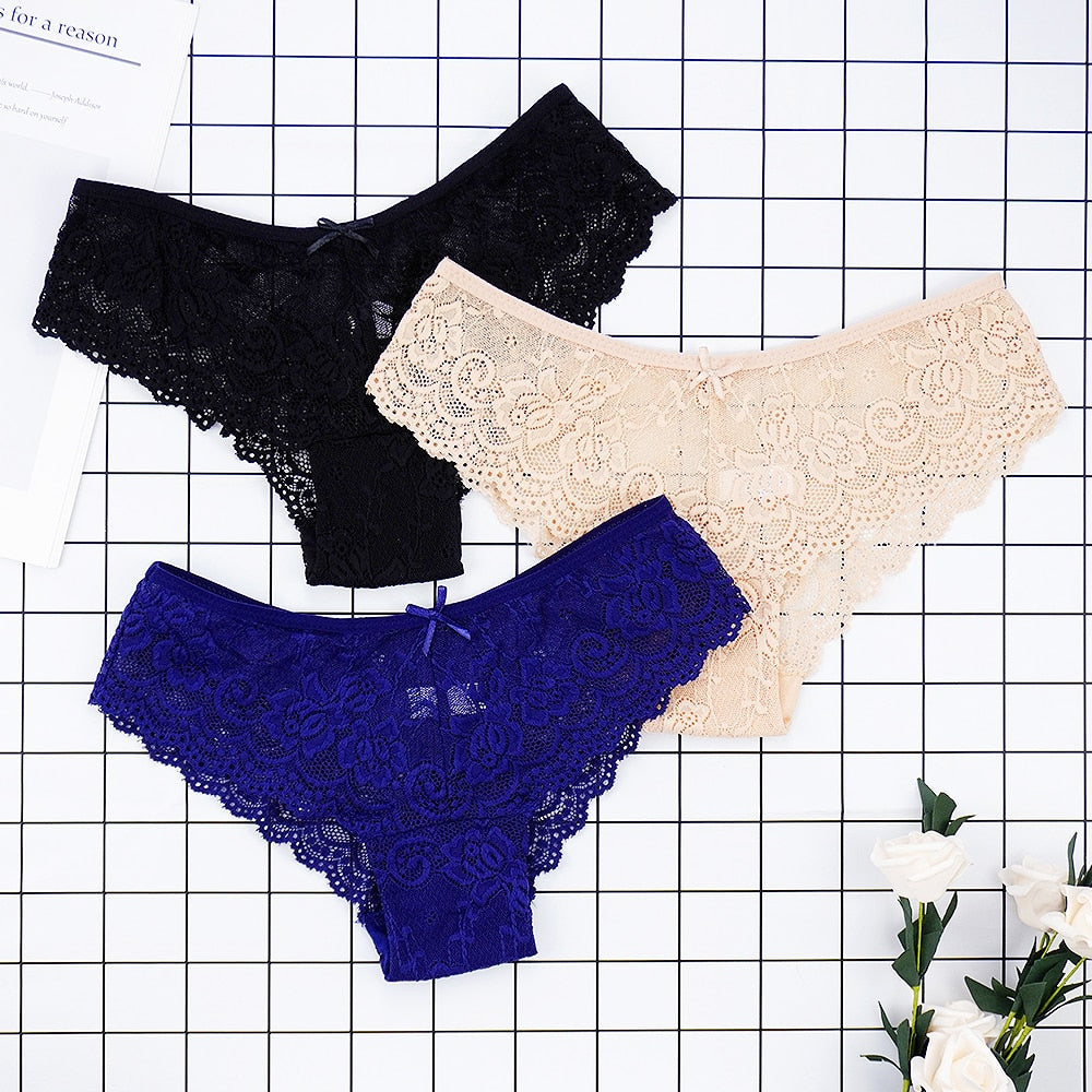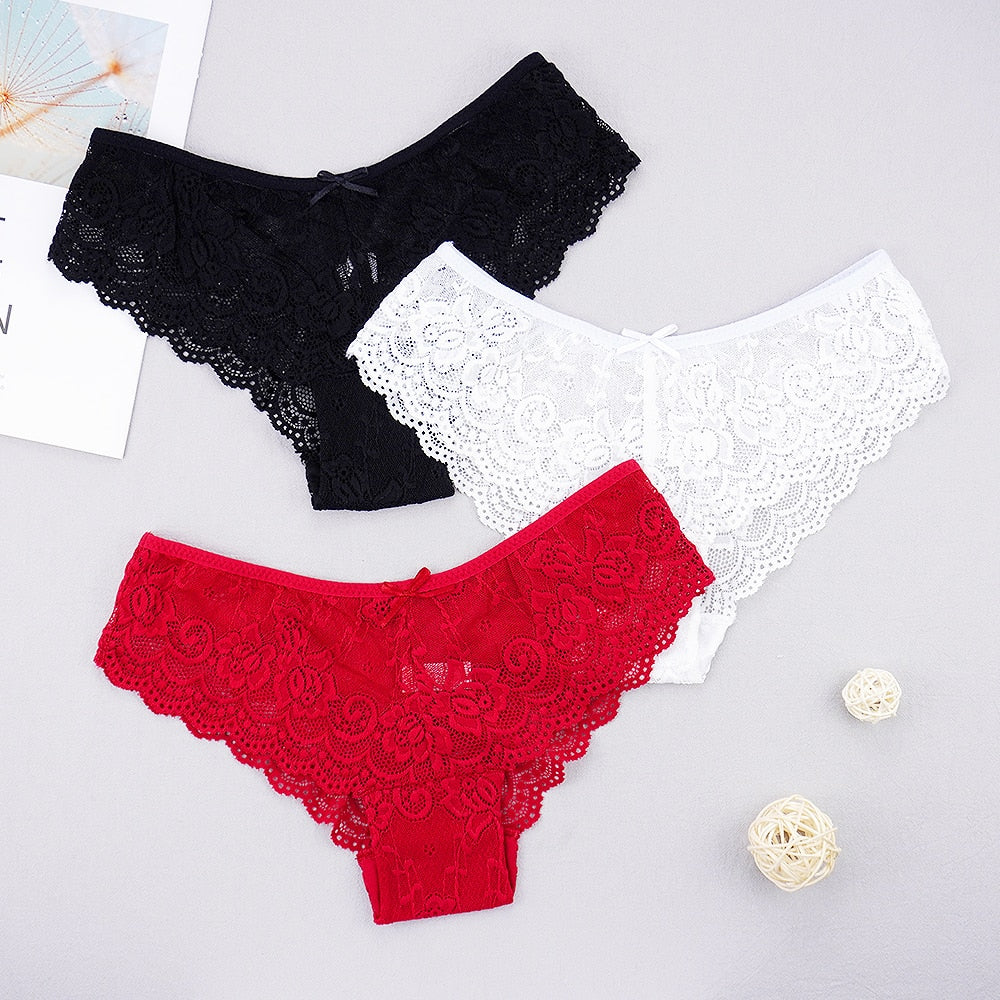 3pcs/lots Women Briefs Sexy Full Lace Panties Hollow Out Low-waist Female Shorts Soft Solid Color Breathable Underwear Fast Ship