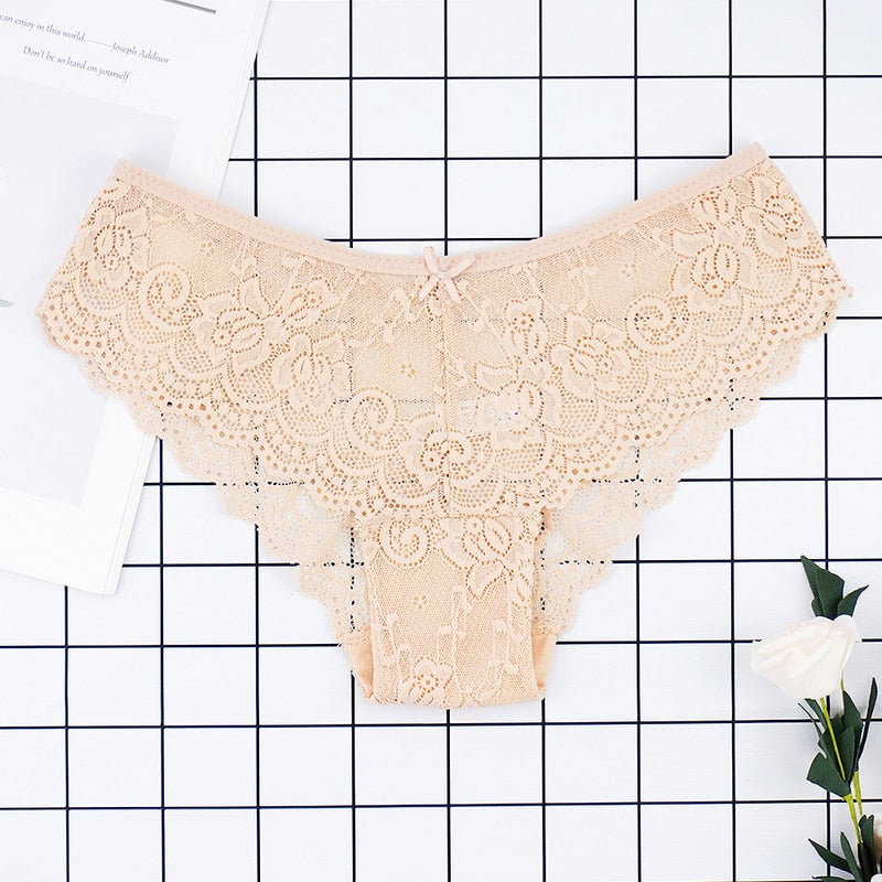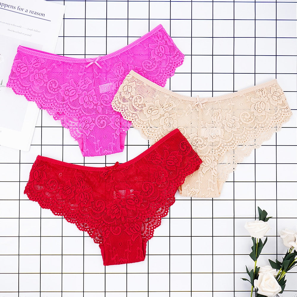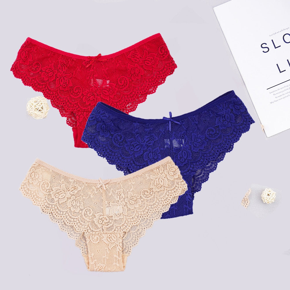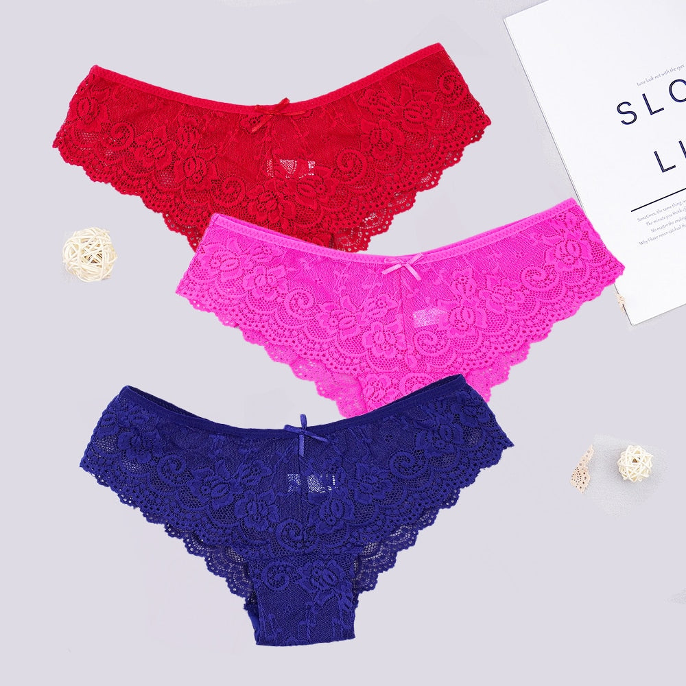 3pcs/lots Women Briefs Sexy Full Lace Panties Hollow Out Low-waist Female Shorts Soft Solid Color Breathable Underwear Fast Ship