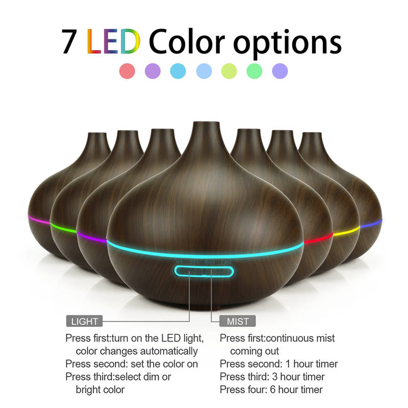 550ML Electric Aroma Diffuser Essential Oil Diffuser Air Humidifier Ultrasonic Remote Control Color LED Lamp Mist Maker Car Home