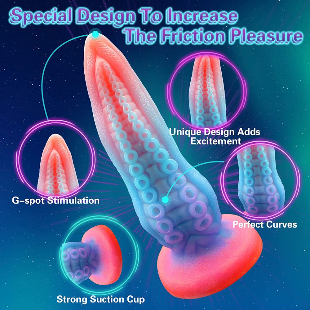 9.6 Inch Huge Realistic Dildo Luminous Octopus Tentacle Thick Dildo,Silicone Anal Plug Dragon Dildo with Suction Cup Fantasy G-Spot for Vaginal and Anal Sex