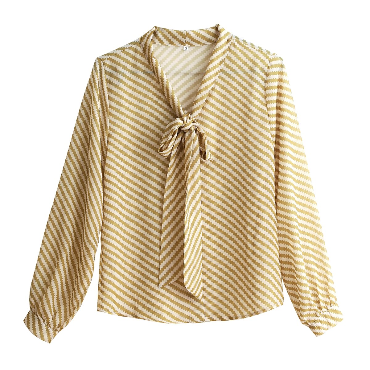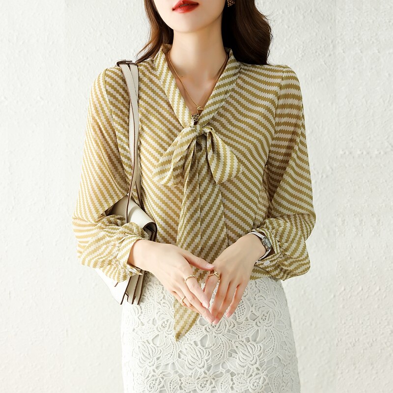 Autumn New Women Chiffon Blouse Fashion Casual High-End Long Sleeved Bow Striped Top Elegant Loose Office Lady Clothing