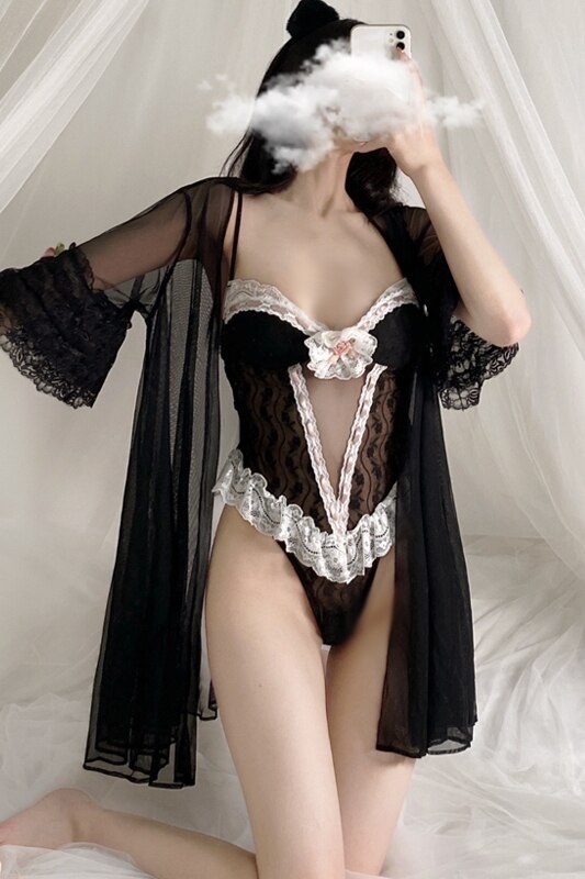 Black Flower Lace One Piece Bodysuit Sexy Lingerie for Women Body Intimate Pajamas Slim Fit Small Chest Underwear New 2021