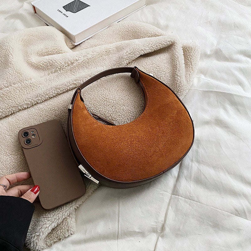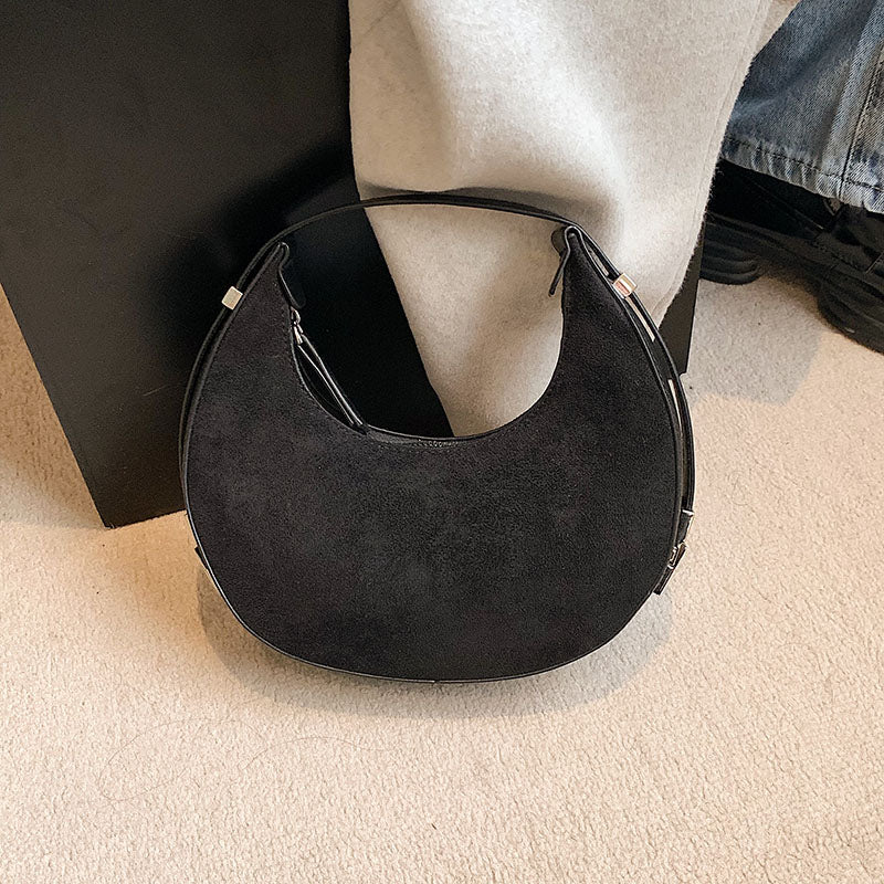 Brushed fabric handbag Women's half moon shoulder bag dumpling bag Fashion casual armpit bag Women's bag