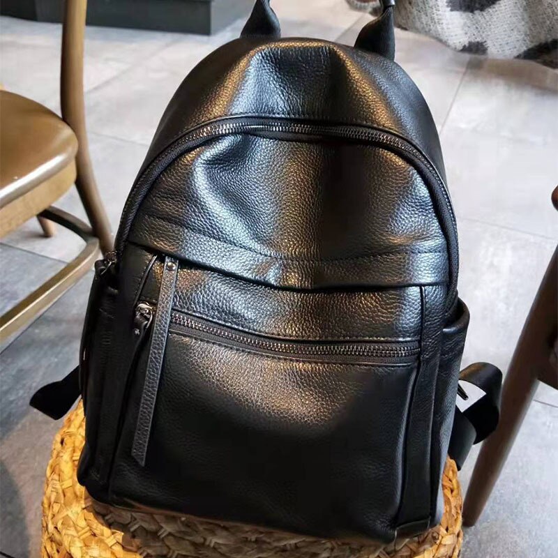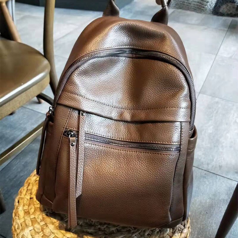 Caramel Real Genuine Leather Backpack Women Simple Fashion Cowhide Lady Leather Backpack Casual Female Rucksack Travel Bagpack