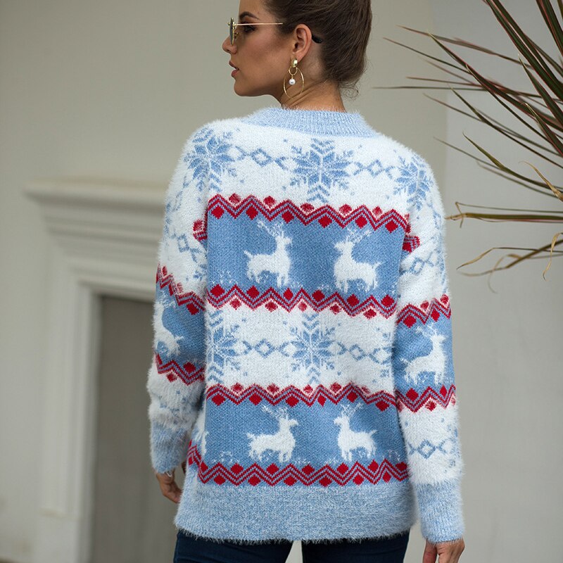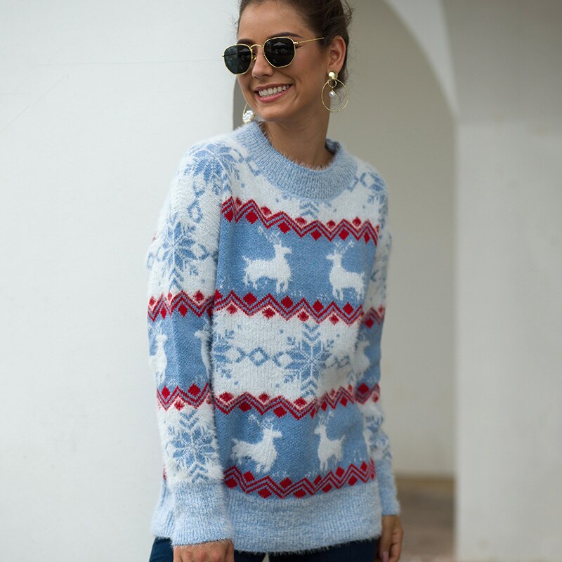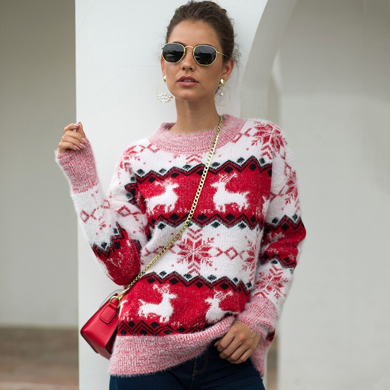 Christmas Sweater Women Winter Warm Snowflake Fawn Sweater Casual Sweet O Neck Pullover Knitted Tops New Year  Fashion Clothes