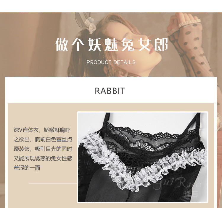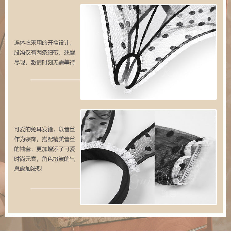 Cosplay Porno Teddies Bunny Sex Uniform Set Women Sexy Lingerie Erotica Bodysuit Lace See-through Onesie Open Crotch Jumpsuit