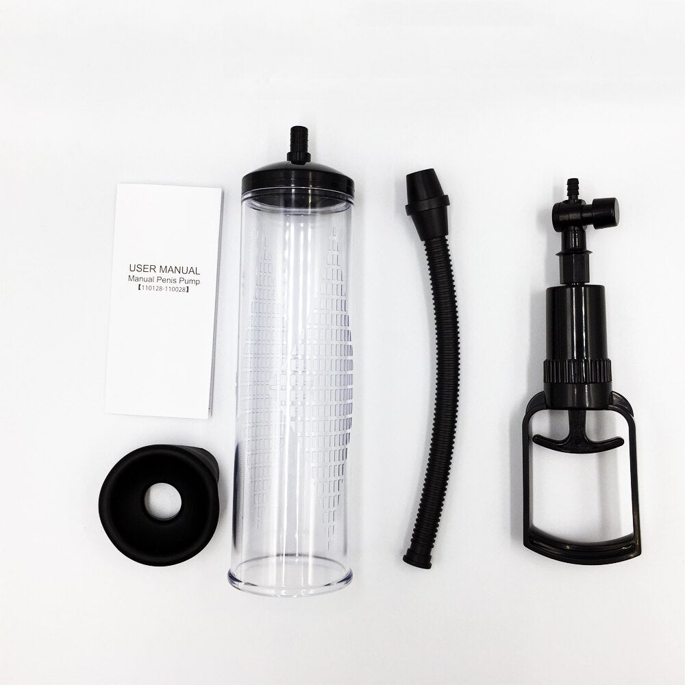 New transparent penis enlargement pumps cock dick pro extender vacuum massager male massage care pump sex toys for men<;br/><;br/>Feature:<;br/>Give your restore confidence, self-esteem and enhance your relationships.<;br/>The pump uses air to increase the size of your penis.<;br/>The cylinder is attached to a soft rubber sleeve.<;br/>Simply place this sleeve over your penis then steadily pump by hand.<;br/>When the bulb is pumped, air is pulled out of the cylinder, creating a vacuum.<;br/>This vacuum helps draw more blood into the penis, strengthening the tissue and causing an erection.<;br/>The vacuum expands the tissue and results in an increase in penis size.<;br/>Easy application allows use in your own home or any private area.<;br/>All-natural: No medicine, injections or operations.<;br/>Increase your manhood easily, quickly and painlessly.<;br/>Clear chamber with measurements so you can see the results.<;br/>Easy push button purge valve.<;br/>Tips:<;br/>This product is for individuals and couples to use, please keep hygiene before and after use.<;br/>For the sake of your health, please do not overuse the product.<;br/>Specifications:<;br/>Transparent tube length:21.5cm/8.46??, Inner diameter:6cm/2.36??(approx)<;br/>Black tube length:22.5cm/8.86??(approx)<;br/>Hand handle size:21.5cm x 6cm/8.46?? x 2.36??(approx)<;br/>Silicone covers diameter:6cm/2.36??(Elasticity)(approx)<;br/>Package Size:25cm x 10cm x7cm/9.84?? x 3.93?? x 2.76??(approx)<;br/>Material:ABS Plastic +Silicone<;br/>Color:Transparent+Black<;br/>Quantity: 1 pc<;br/>Note:<;br/>Transition: 1cm=10mm=0.39inch<;br/>With retail package.<;br/>Please allow 1-3mm error due to manual measurement. pls make sure you do not mind before you bid.<;br/>Due to the difference between different monitors, the picture may not reflect the actual color of the item.