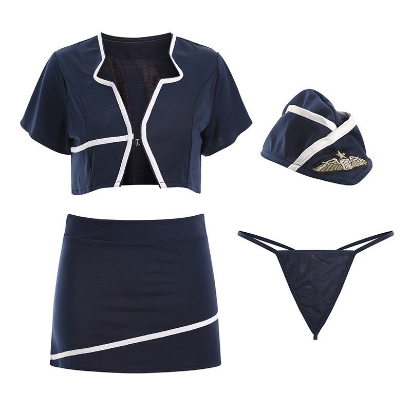 Erotic Lingerie Deep V Breastless Air Hostess Passion Role Play Sexy See-through Temptation Uniform Cosplay Sexy Fantasy Skirt