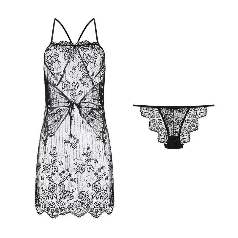 Erotic Lingerie Sexy Eyelash Lace Embroidered Lace-up Butterfly Halter Nightgown Sexy Lingerie Porno Sexy Costumes for Sex