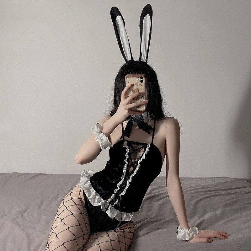Erotic Lingerie Women's Open Front Playful Cute Bunny Role Play Costume Lolita Bikini Sexy Cosplay Set Uniform Seduction