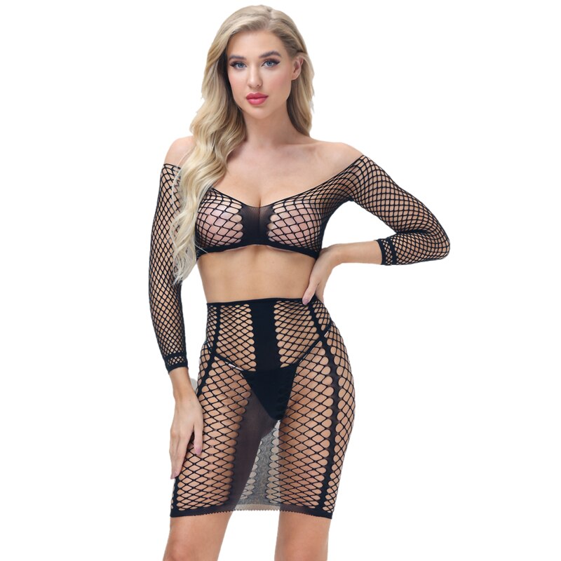 European and American Women's Sexy Fashion Temptation Hollow Perspective Gauze Fishnet Lingerie Set 2-piece Set Erotic Lingerie