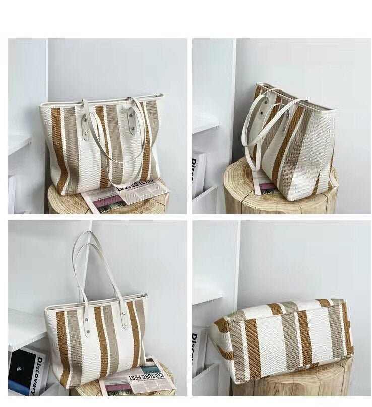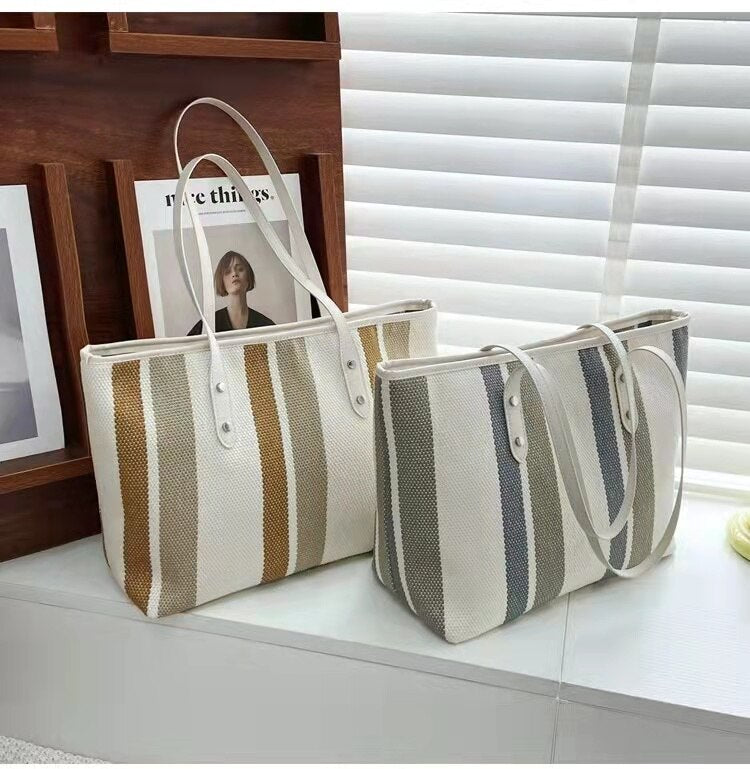Fashion ladies Korean plaid bag ins casual simple striped canvas shoulder bag