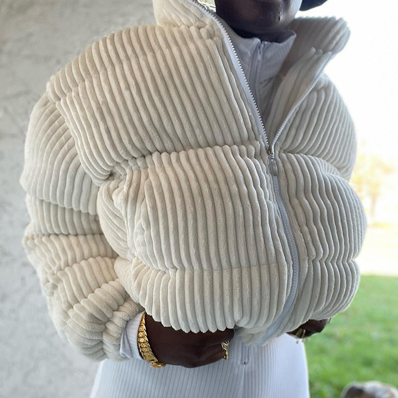 Fashion Solid Color Short Puff Jacket Cotton Padded Warm Winter and Autumn Clothes Long Sleeve Women's Coat