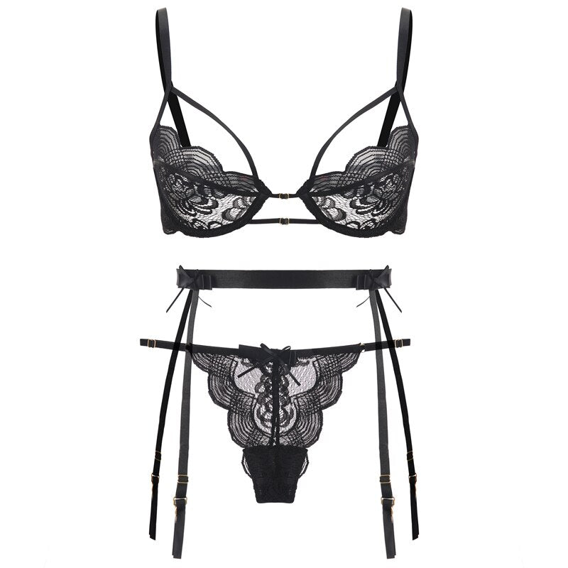 Femme Embroidery Push Up Bras G-String Panties Underwear Women Sexy Sensual Lingerie Woman Padded Underwear Set Garter