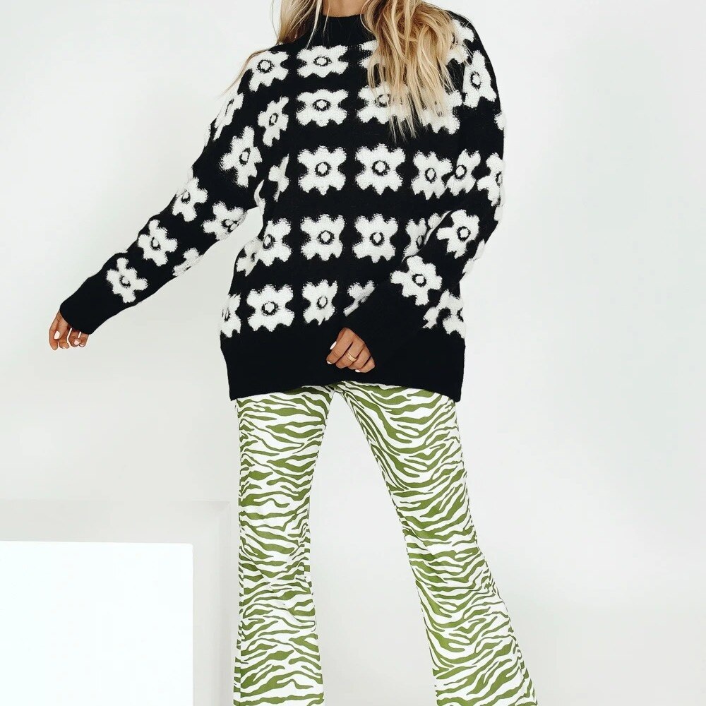 Flower Winter Sweater Women 2021 New Casual Loose Pullover Round Neck Long-sleeved Thick Knitted Top