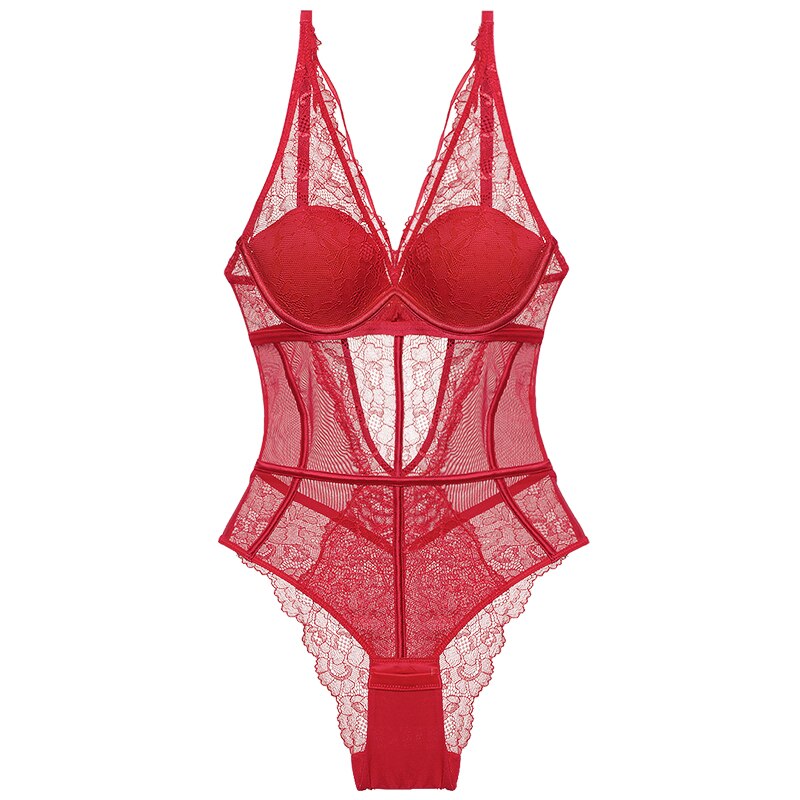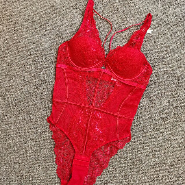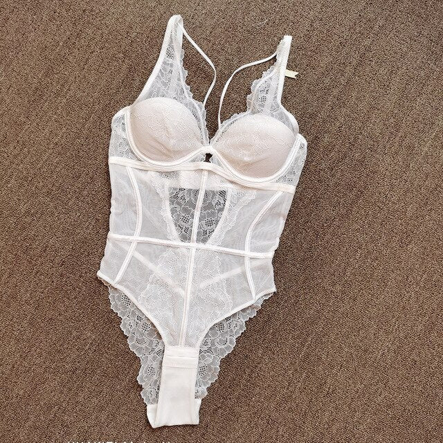 High Cut Sexy Body Women Lingerie Thin-Padded Bodysuit Strappy Cup Underwire Bra and Brief Set Hollow Out Back Underwear