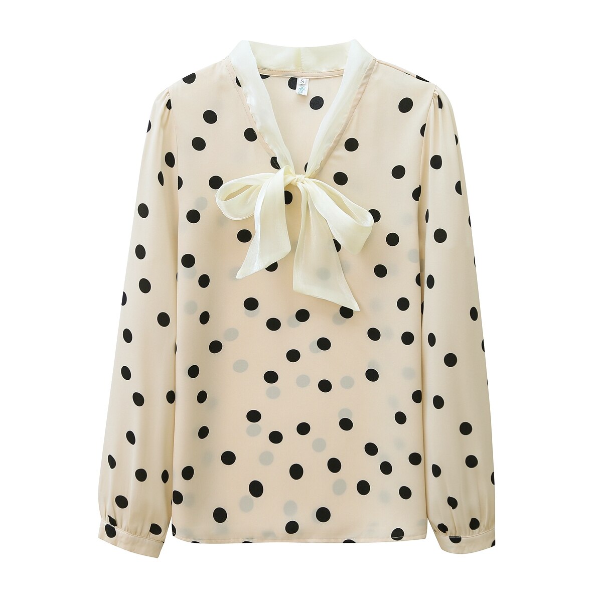 High-end Polka-dot Shirt Women's Autumn 2021 New Korean Version Long Sleeved Bow Chiffon Blouse Elegant Slim Office Lady Tops