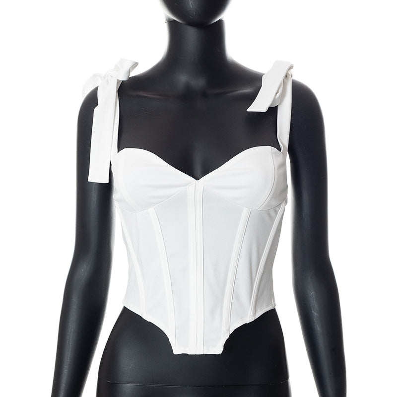 Hot 2022 For Summer Elegant Bandage Sleeveless Fashion Women's Clothing White Crop Top Rave Festival Sexy V-Neck Tops Streetwear