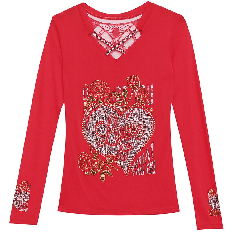 Hot Drilling Women's T-Shirt New 2021 Autumn Long Sleeve V-Neck Mesh Tops Elegant Slim Ladys Blusas Clothing