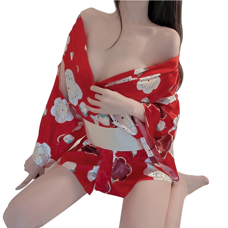 Japanese Erotic Lingerie Female Sensual Breastless Print Kimono Bow Uniform Exotic Dancewear Sexy Cosplay Lingerie Set
