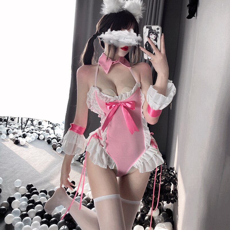 Japanese Lolita Anime Pink Sexy Bunny Girl Rabbit Cosplay Women Costume Cute Bodysuit Uniform Roleplay Kawaii Lingerie for women