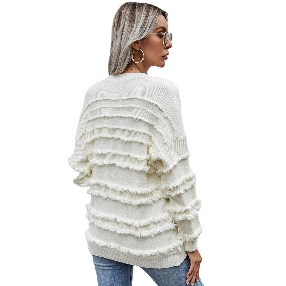 Knitwear Winter 2021 Solid Tassel Knitted Sweater Mujer Loose Waist Women Jersey Thick Thermal Pulsweetheart Long Sleeve Jumper