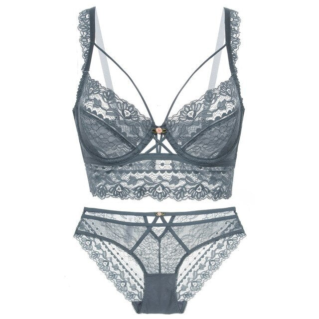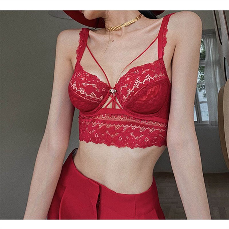 Lace Strap Push Up Underwear Sexy Bar Set Women Transparent Panties Brassiere Soft Top Bar Solid Color Lingerie Suit For Women