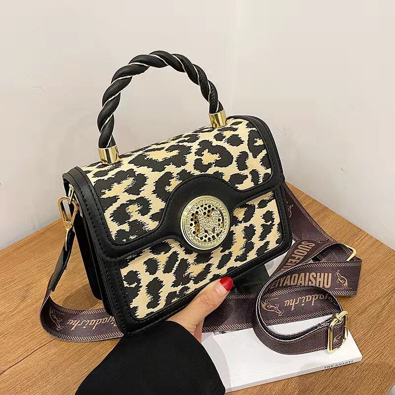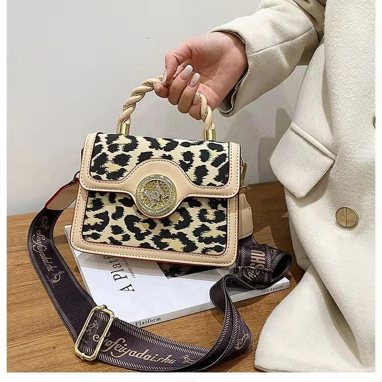 Leopard print small bag ladies new trend fashion one-shoulder diagonal autumn and winter portable small square bag