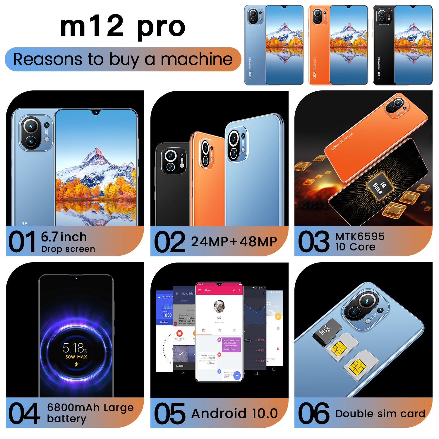 Low-cost best-selling mobile phone M12 Pro unlocked version 24+48MP 12+512GB 6800mAh10-core dual-sim phone