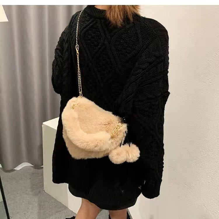 Luxury new plush niche chain shoulder messenger fashion plush bag
