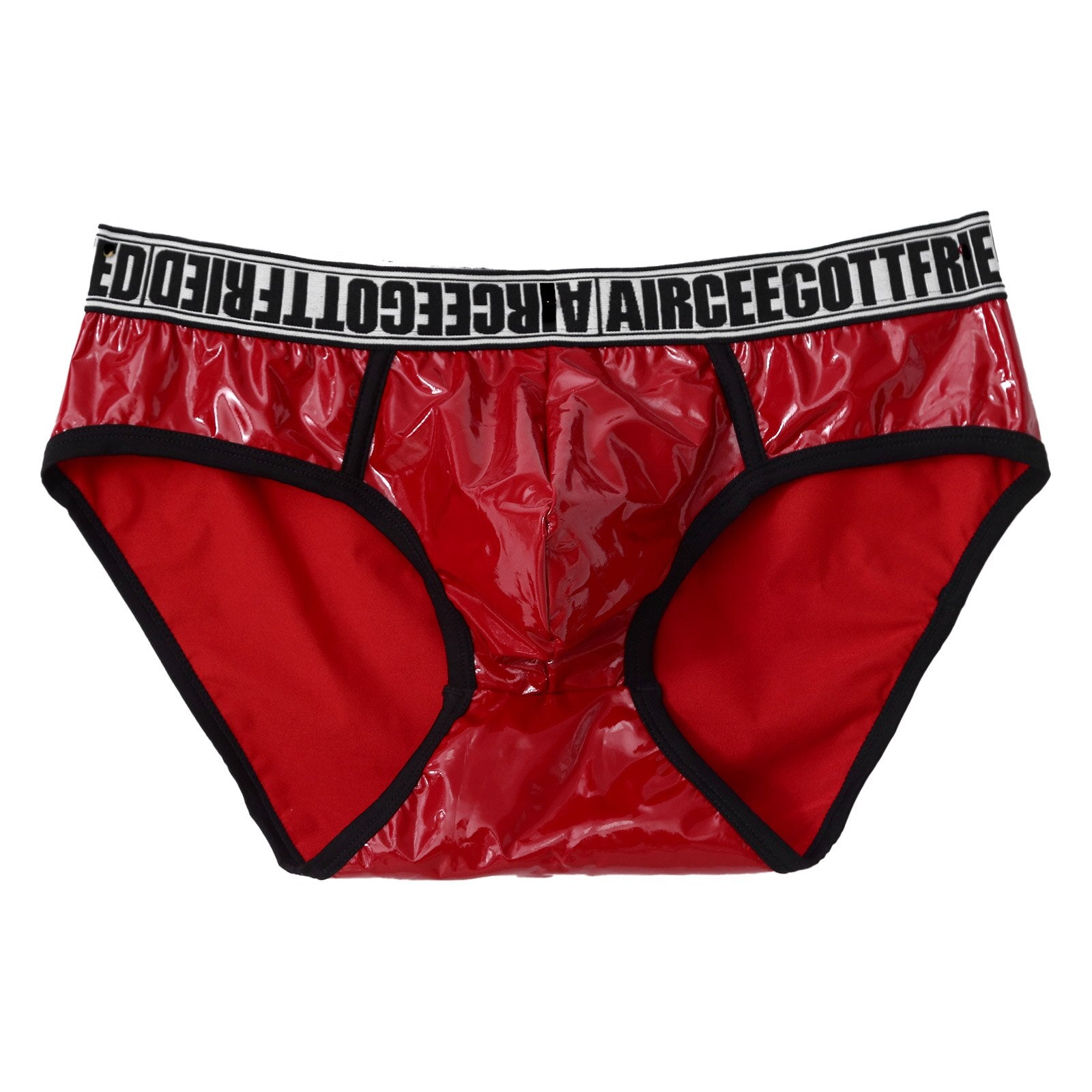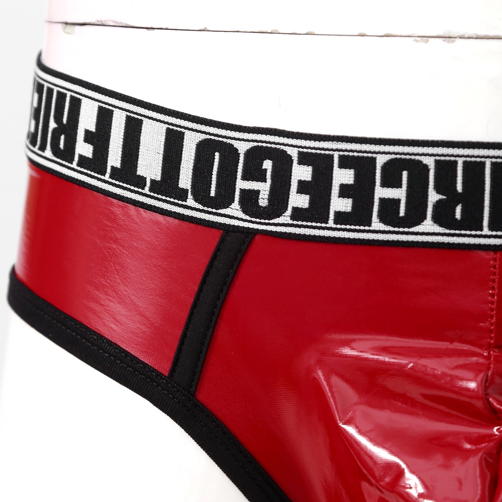 Men Letter Print Elastic Waistband Briefs Underwear Low Waist Bulge Pouch Faux Leather Underpants.
