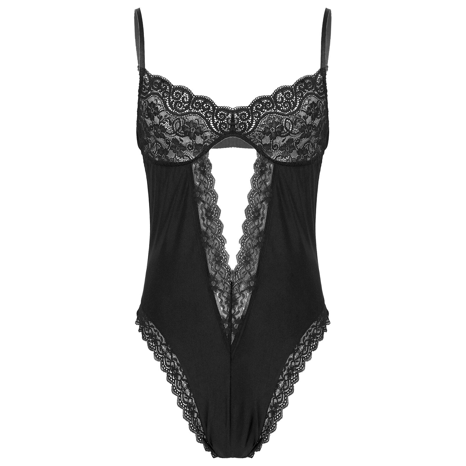 Men See-through Lace Patchwork Cutout Bodysuit Backless Leotard Sissy Nightwear.