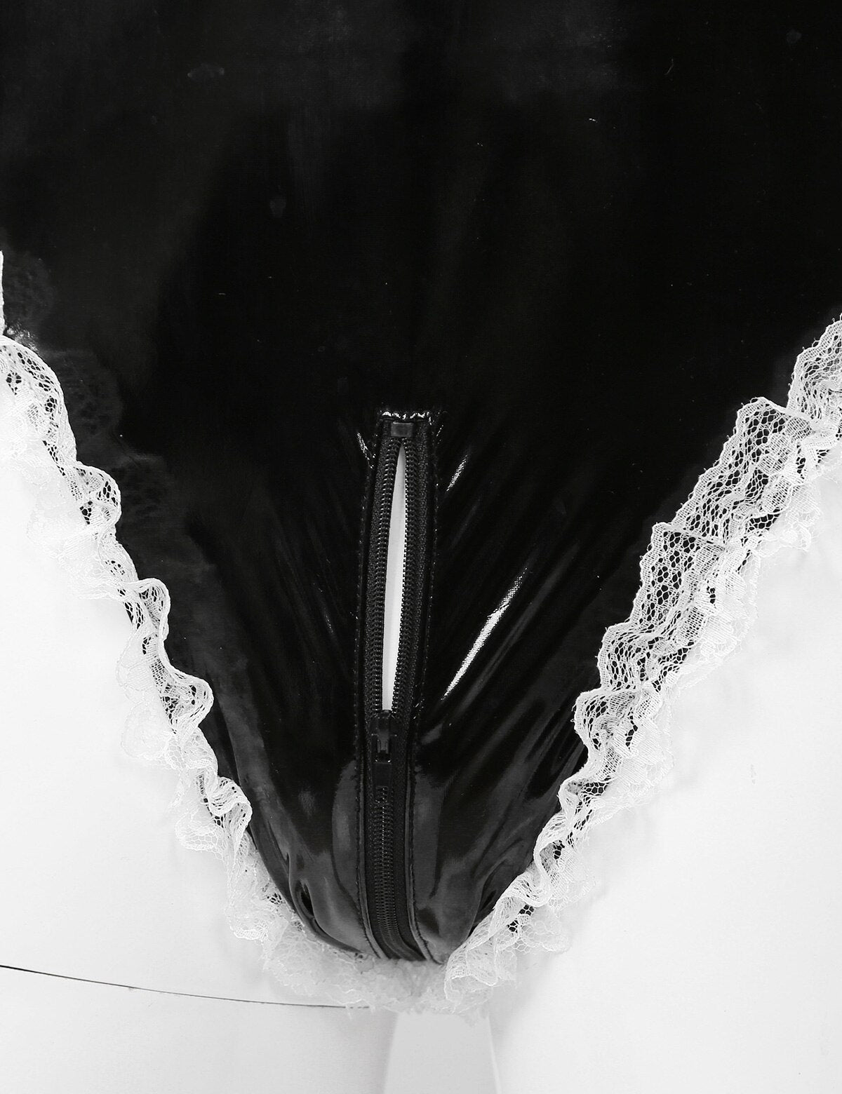 Men adults wet look sissy maid cosplay costume Halloween roleplay set, make you alluring and seductive.