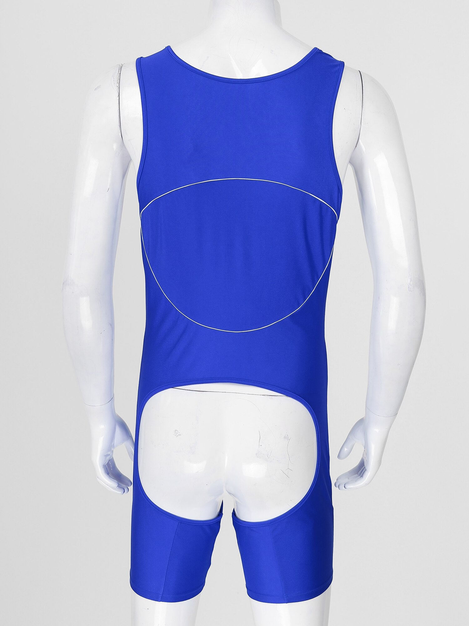 Men One-piece Open Crotchless Open Butt Jumpsuit Nightwear Color Block U Neck Sleeveless Bodysuit.