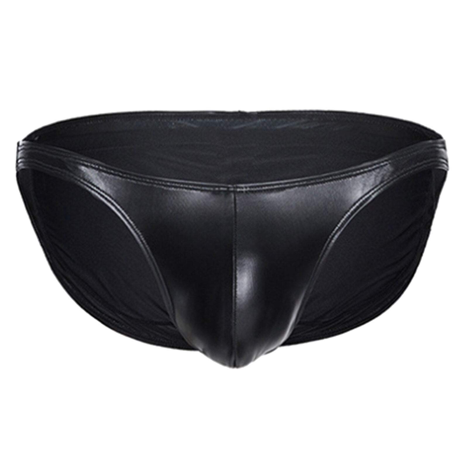 Men Removable Pads Bulge Pouch Briefs Low Waist Faux Leather Underpants Underwear.