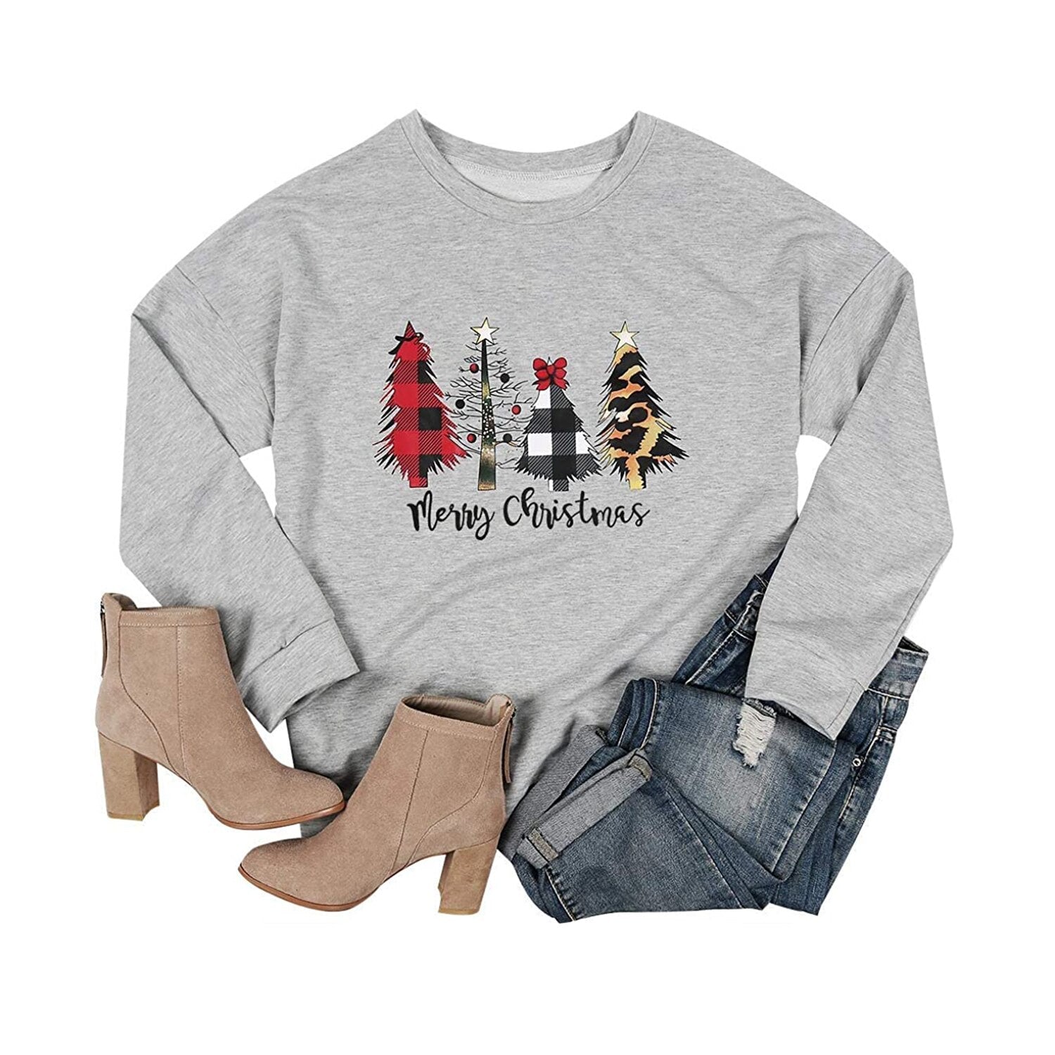 Style: Merry Christmas Sweatshirt for Women, Christmas Letter Prints Fall Winter Shirt Blouse Pullover for Women.