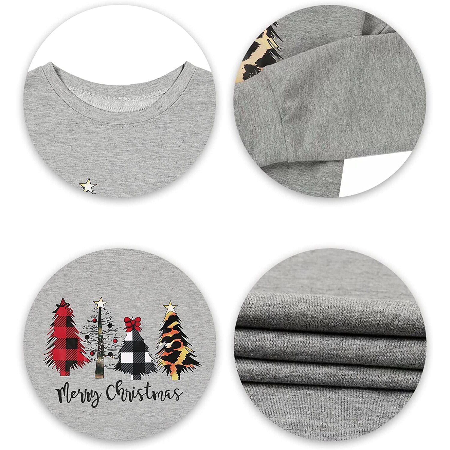 Christmas Tree Sweatshirt Womens Long Sleeve Leopard Print Holiday Graphic Shirt Tops Pullover