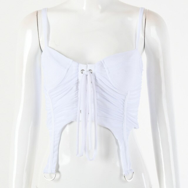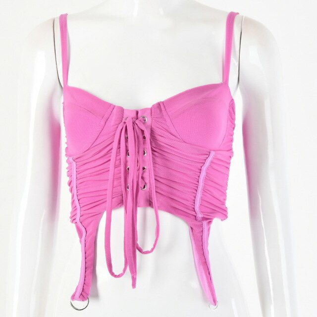 Mesh Ruched Lace Up Sleeveless Tie Front Top Solid Camis Bustier Crop Tops Women Sexy Backless Corset Top Cropped 2022 New