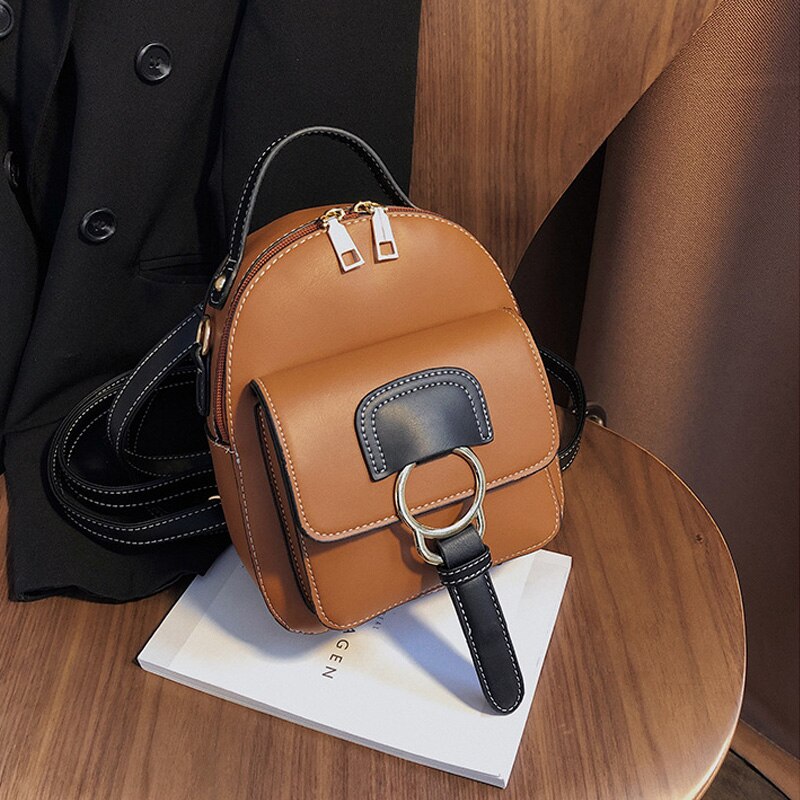 Mochila pequena feminina de couro artificial, nova bolsa de ombro da moda em couro ecológico, versão coreana, mochila universitá