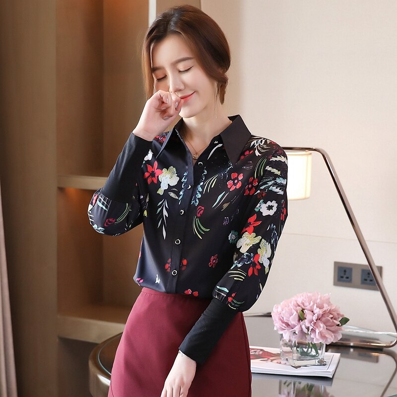 New 2021 Spring Autumn Women Blouse Shirt Fashion Print Long Sleeve Chiffon Blouse Elegant Slim Office Lady Tops