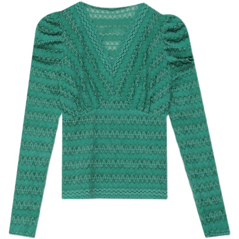 New 2022 Spring Women's T-Shirt Fashion Sexy V-neck Long Sleeved Brushed Lace Bottoming Shirt Elegant Slim Hollow Out Tops
