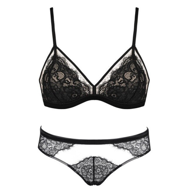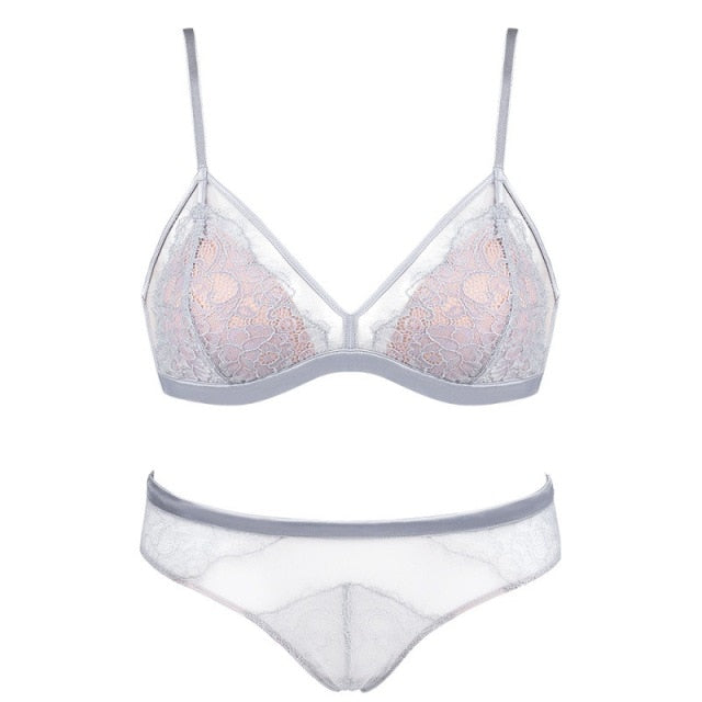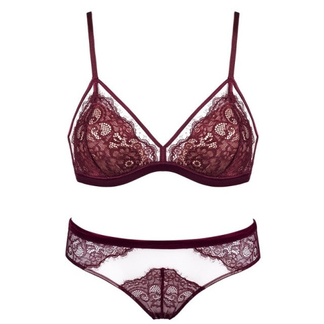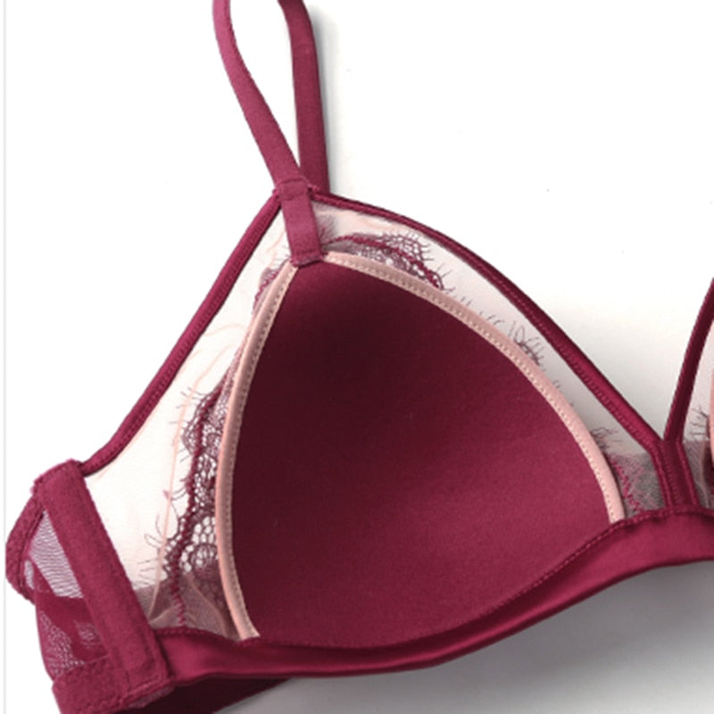 New Mesh Panties Medium Padded Women Lingerie Cup White Red Black Sexy Push Up Bandage Bra and Briefs Set Underwear