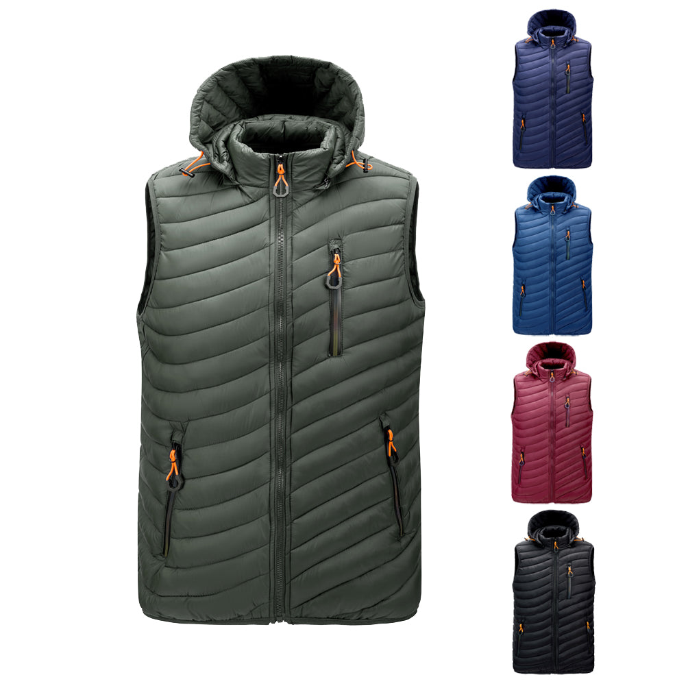 New Removable Hat Puffer Vest Jacket Men Winter Lightweight Down Casual Cotton-Padded Coat