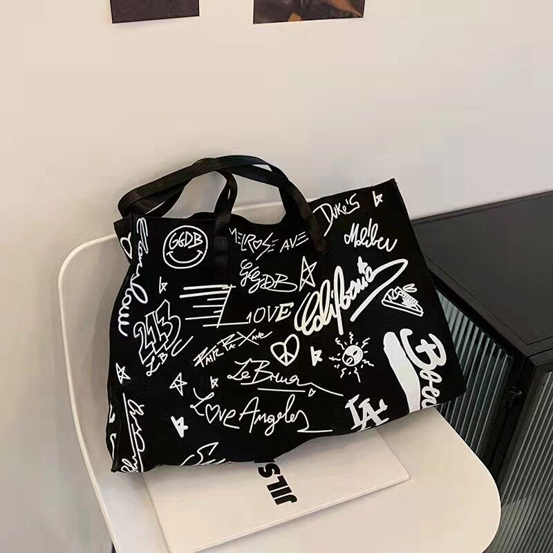 New style simple canvas fashion western style graffiti ladies single shoulder bag