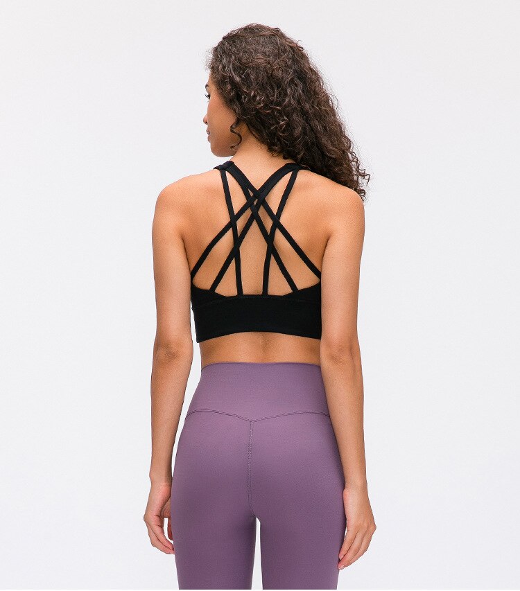 NWT Naked-feel Fabric Anti-sweat Pro Training Fitness Bras Crop Tops Women Push Up Shockproof Running Sports Bras Top