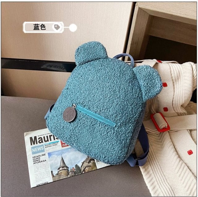 Portable Children Travel Shopping Rucksacks Casual Autumn Winter Lamb Fleece Women's Bagpack Cute Bear Shaped Shoulder Backpack