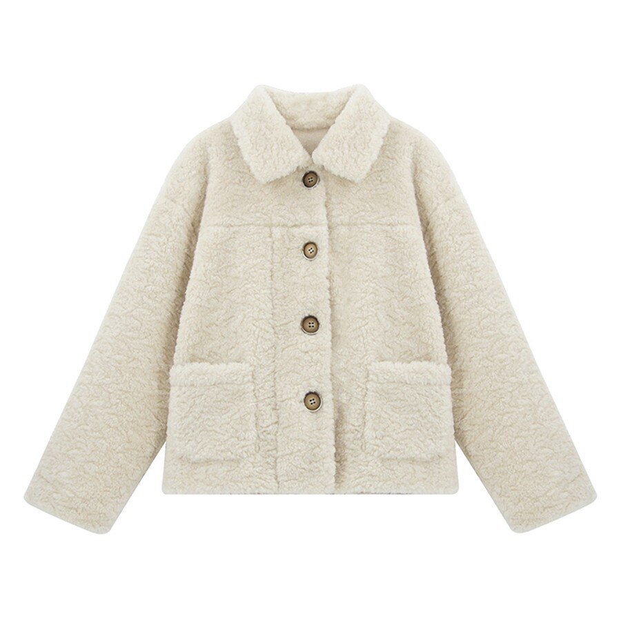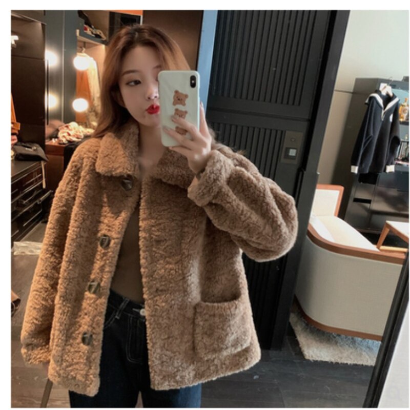 Retro Short Lamb Wool Coat Female Autumn and Winter New Plush Coat All-match jacket Single-breasted Casual Female Outwear