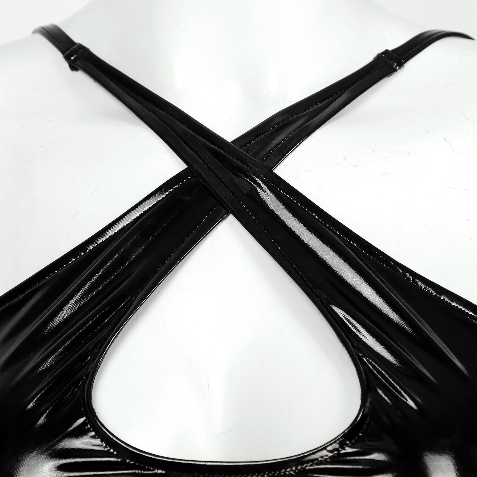 S-XXL Women Patent Leather Backless Crop Top Bra Cross Straps Wetlook Camisole Sexy Lingerie Vest Pole Dance Costume Clubwear