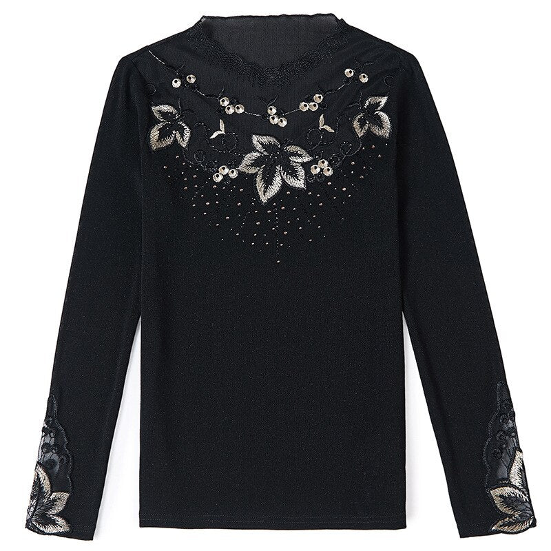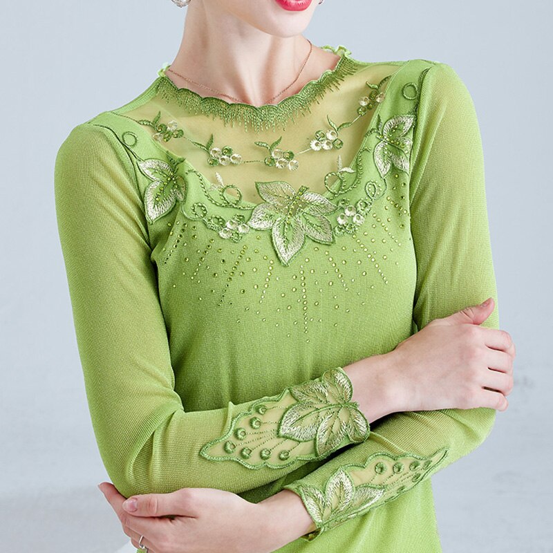 SALE Women T-shirt New 2021 Fashion Casual Long Sleeve Hollow Out Mesh tops Elegant Embroidery Blouse M-4XL Women Shirt